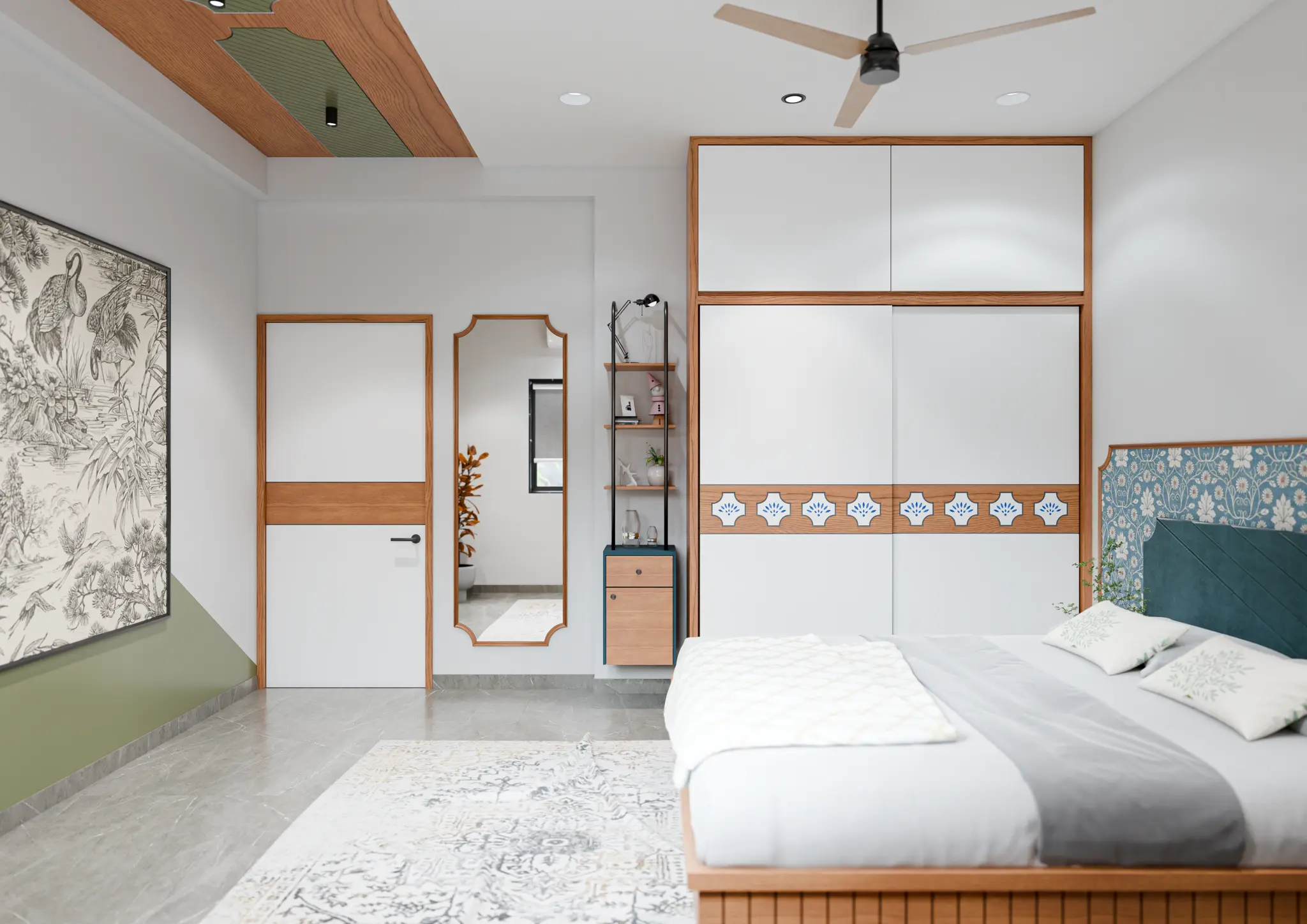 Home interior design usually includes the entrance, living room, kitchen, bedrooms, wardrobes, and prayer areas, all planned with balanced layouts, proper lighting, and functional storage solutions.